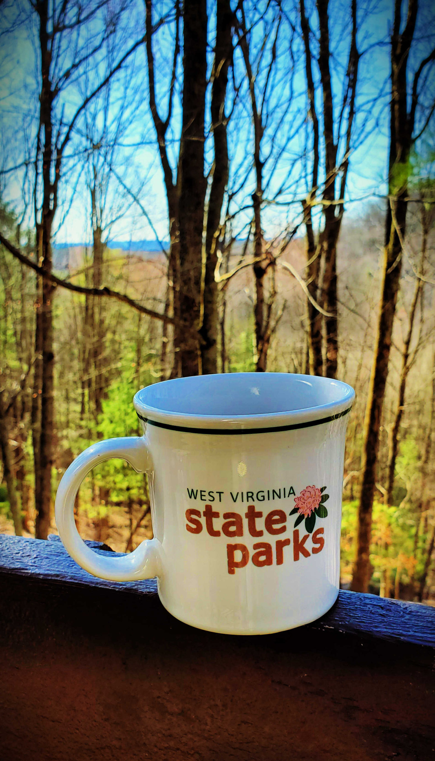 Previous Image Next Image WV State Parks Mugh Coffee and West Virginia Photo of mug with woods background